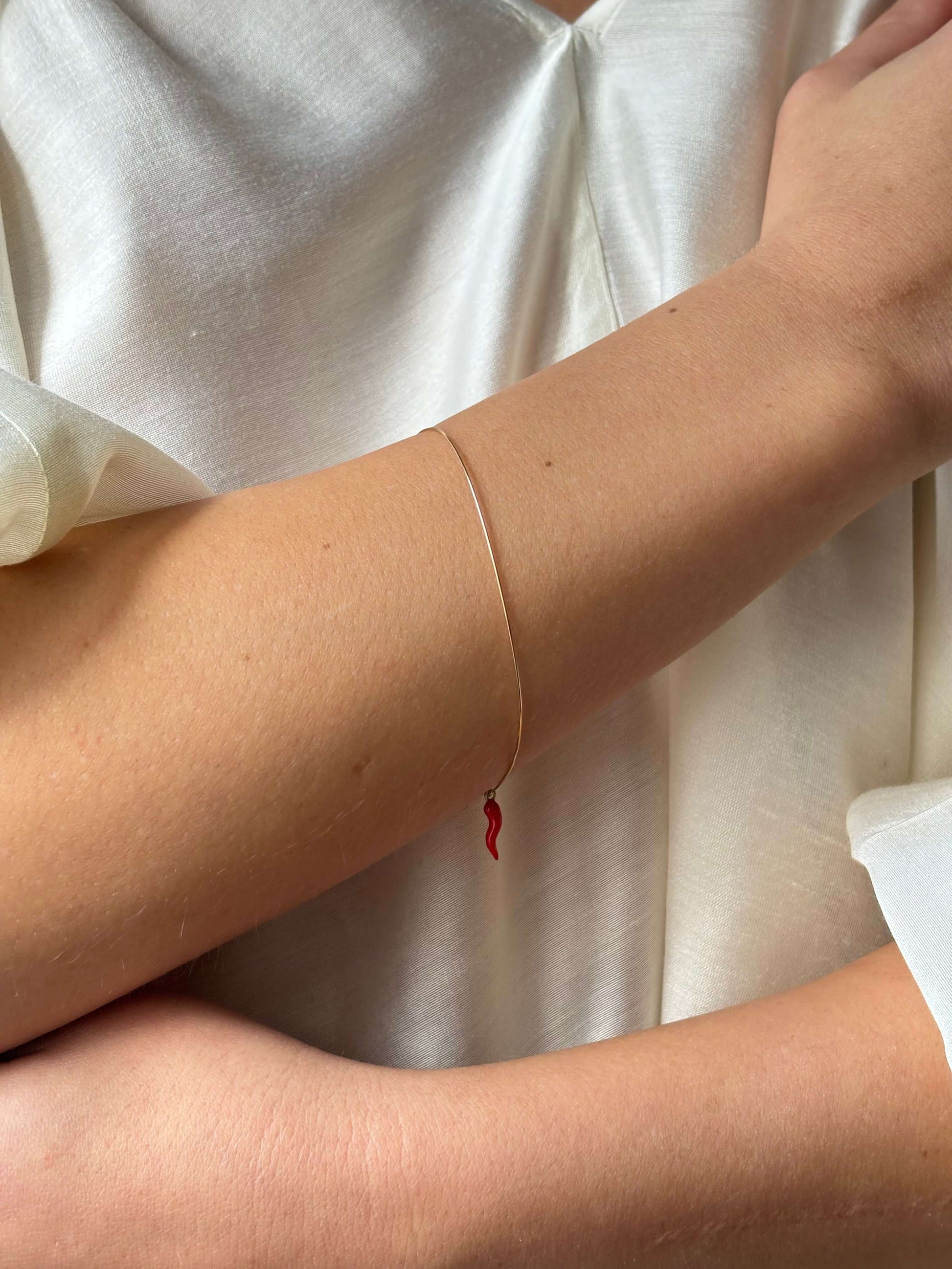 Bracciale in gold filled 14 carati con cornetto infilato smaltato rosso.