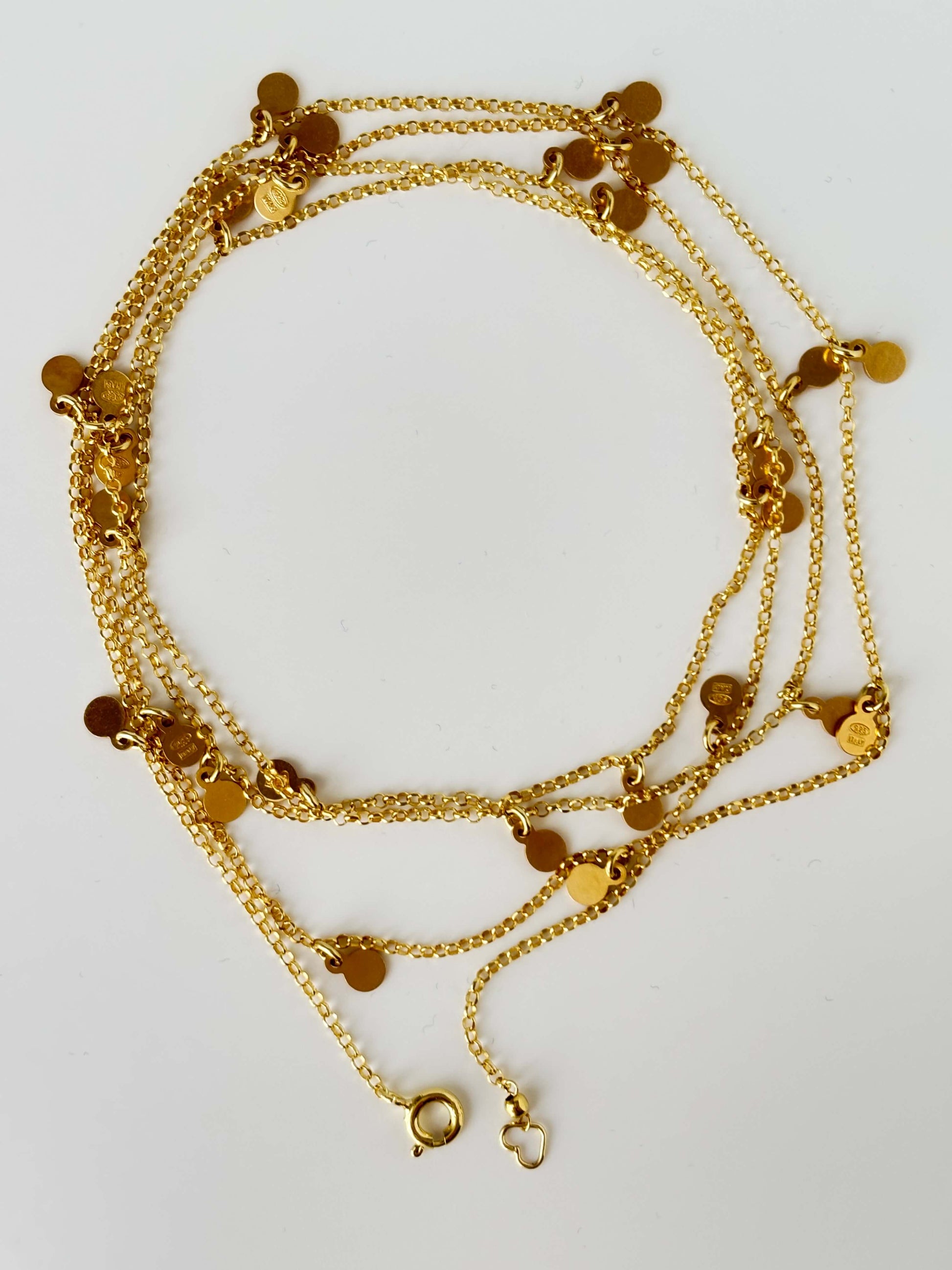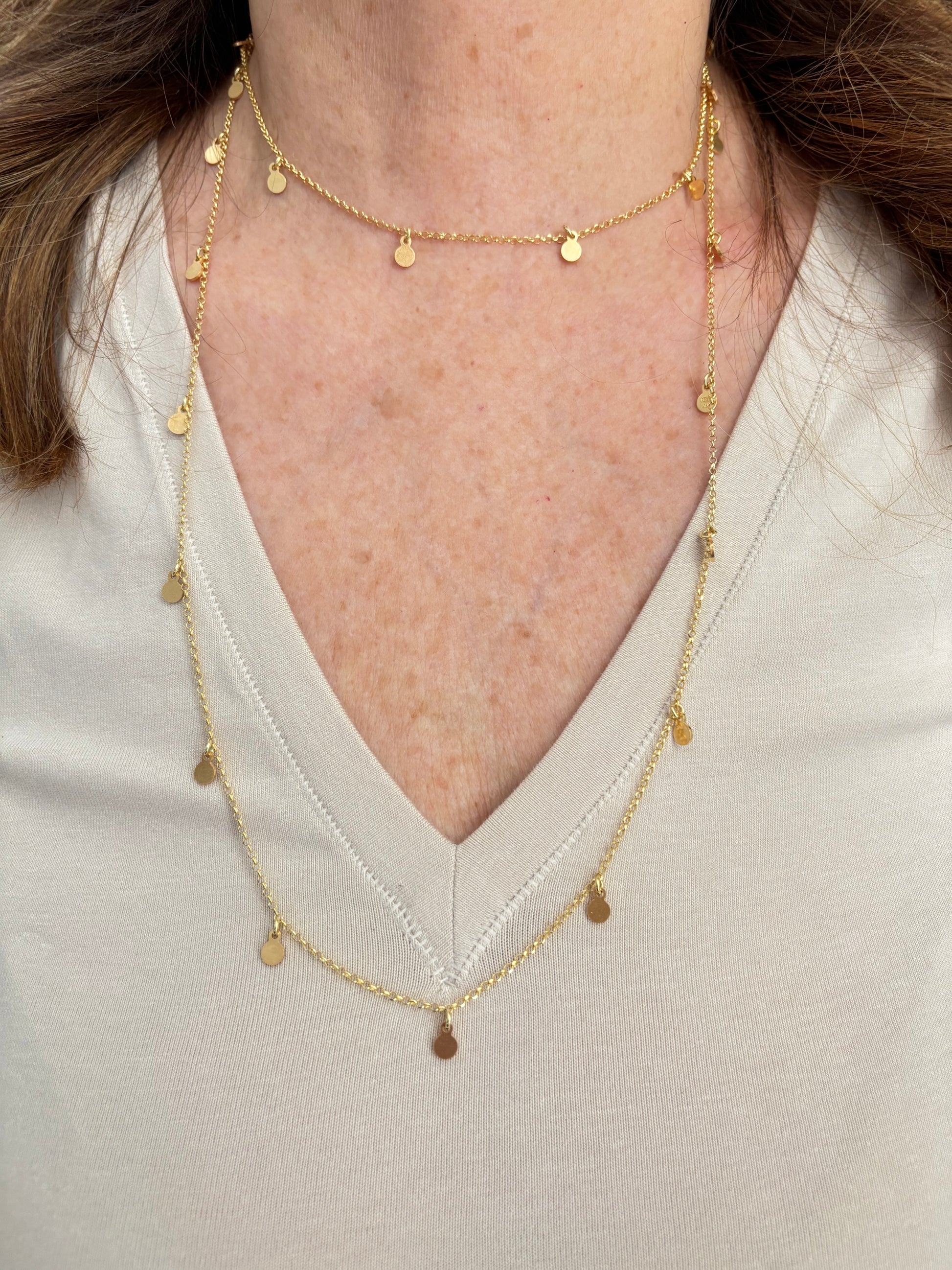 Collana Milly realizzata a mano con catena sottile e piccole medagliette pendenti in argento dorato 925.