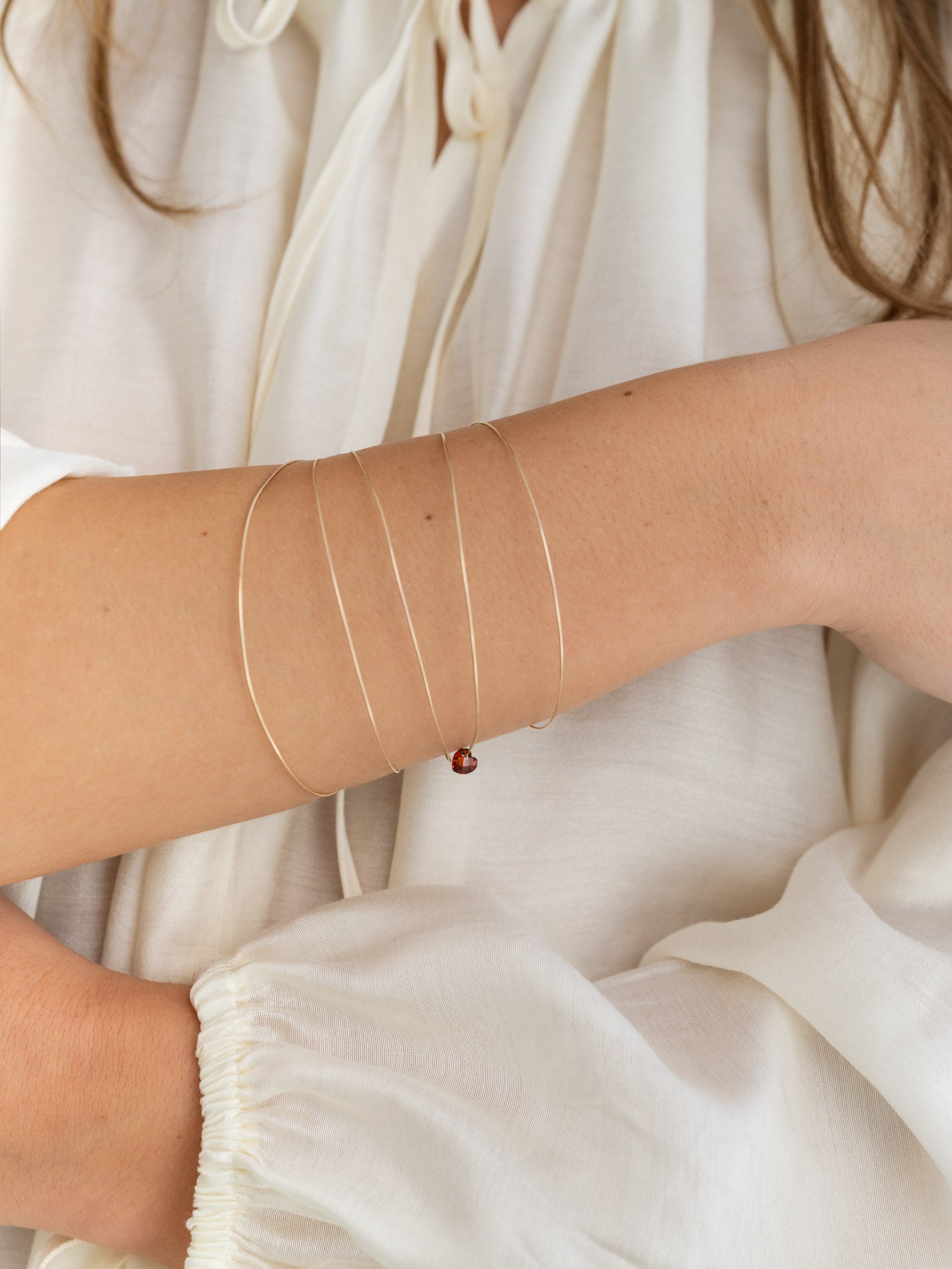 Set di 5 Sottili bracciali in Gold Filled 14 carati e un cuoricino di zircone rosso.